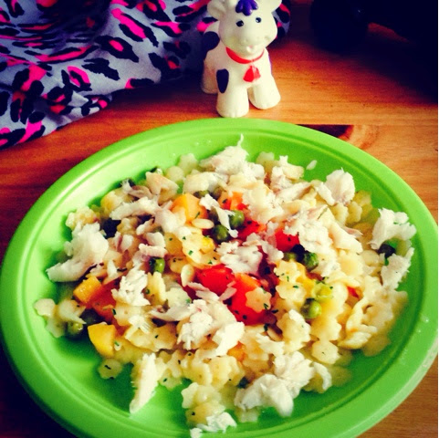 Fish + vegetables + nuddles = tasty meal for kids:)